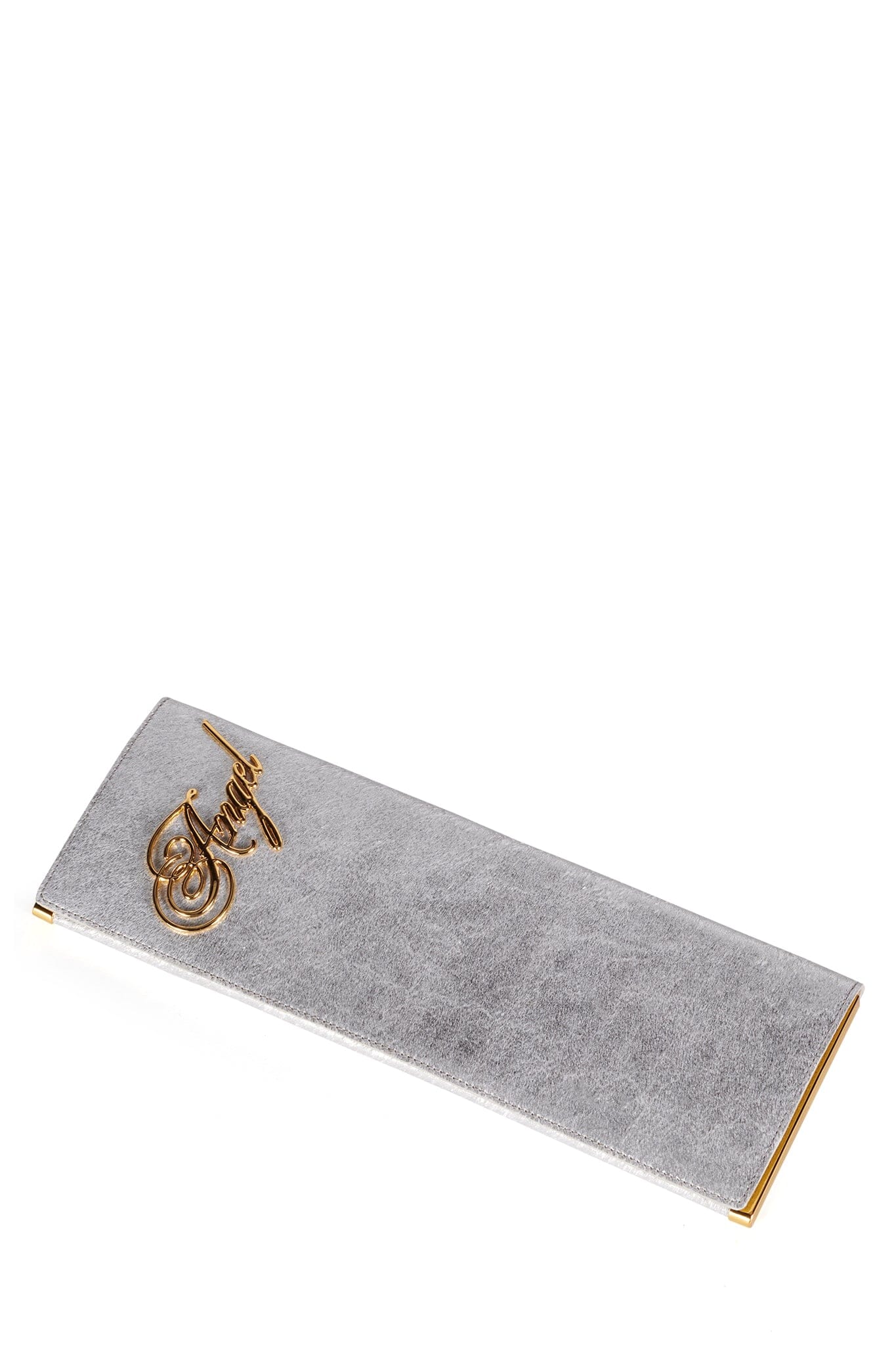 Calf-hair clutch with Angel metal motif